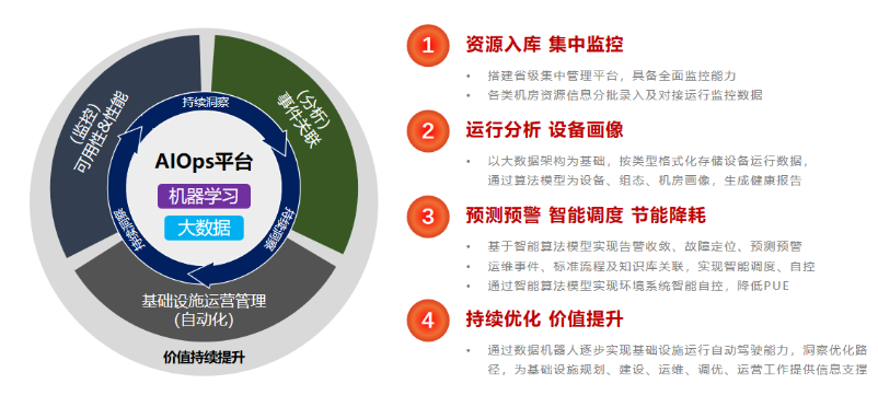 该基地系统原有多个独立平台,数据分散,没有统一部署,各系统数据之间无关联,无法对设备指标进行分析预测,无综合事前预防、事中跟踪、事后分析等功能,不具备机器学习、动态感知进化等能力。